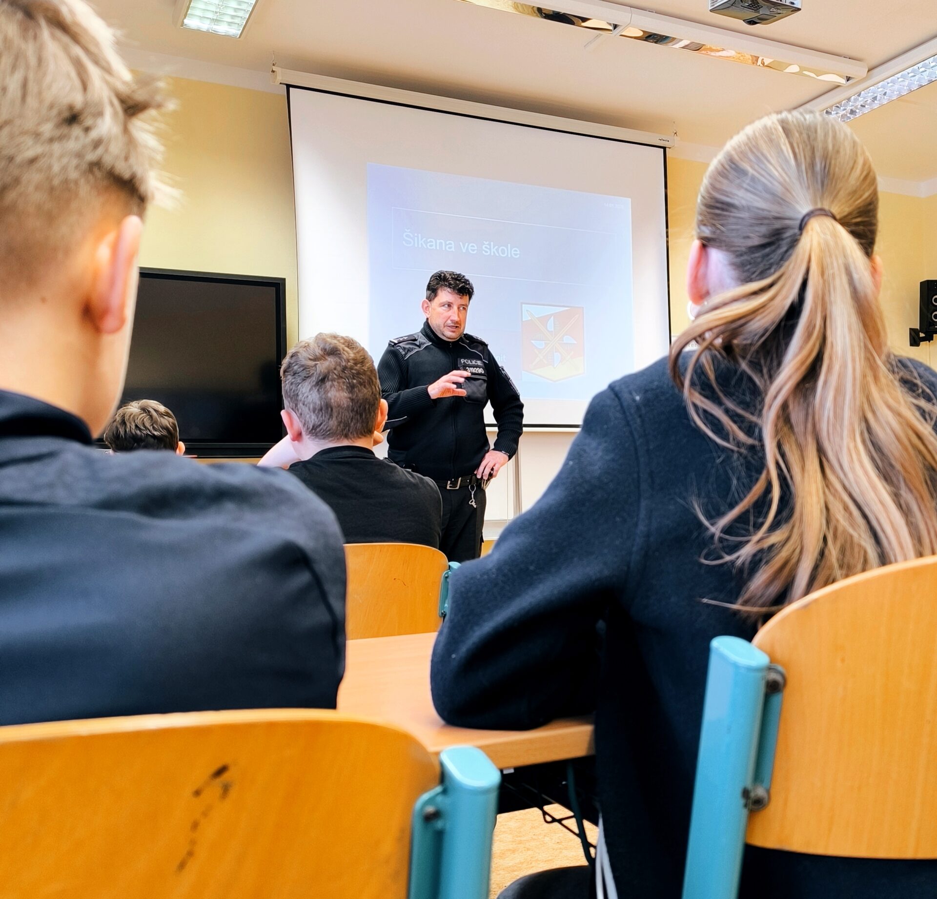 Součástí besedy byly konkrétní příklady ze školního prostředí i z online světa. Žáci aktivně diskutovali, kladli otázky a vyjadřovali své názory. Společně jsme se zaměřili na to, jak se v případě šikany zachovat, na koho se obrátit o pomoc a proč je důležité nebýt lhostejný a zastat se druhých.